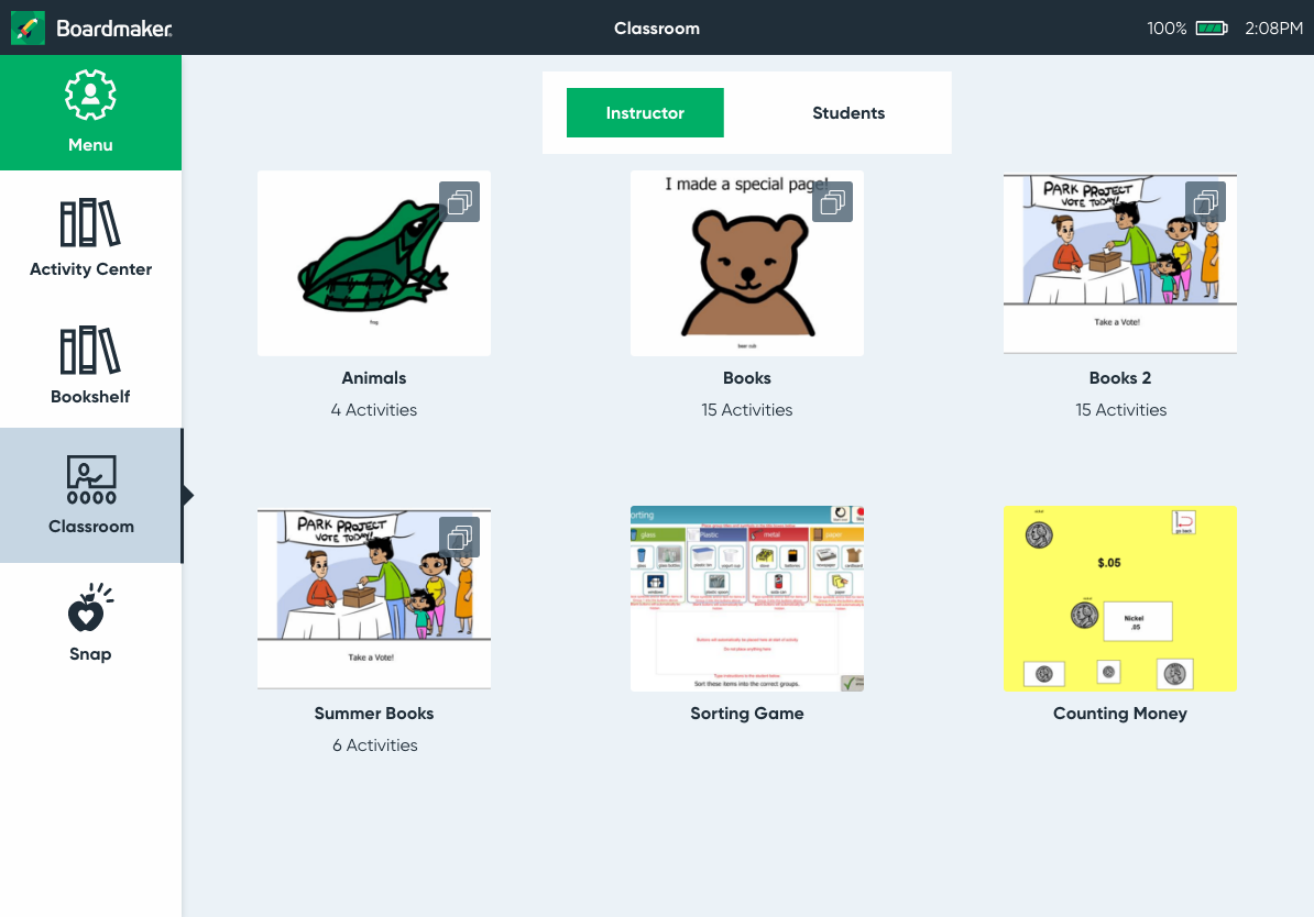 Boardmaker 7 Student Center is an app that brings personalized visuals and symbol-supported educational materials home. Assigned activities appear automatically in the learner’s account and can use custom settings for eye gaze, switch, mouse and touch.