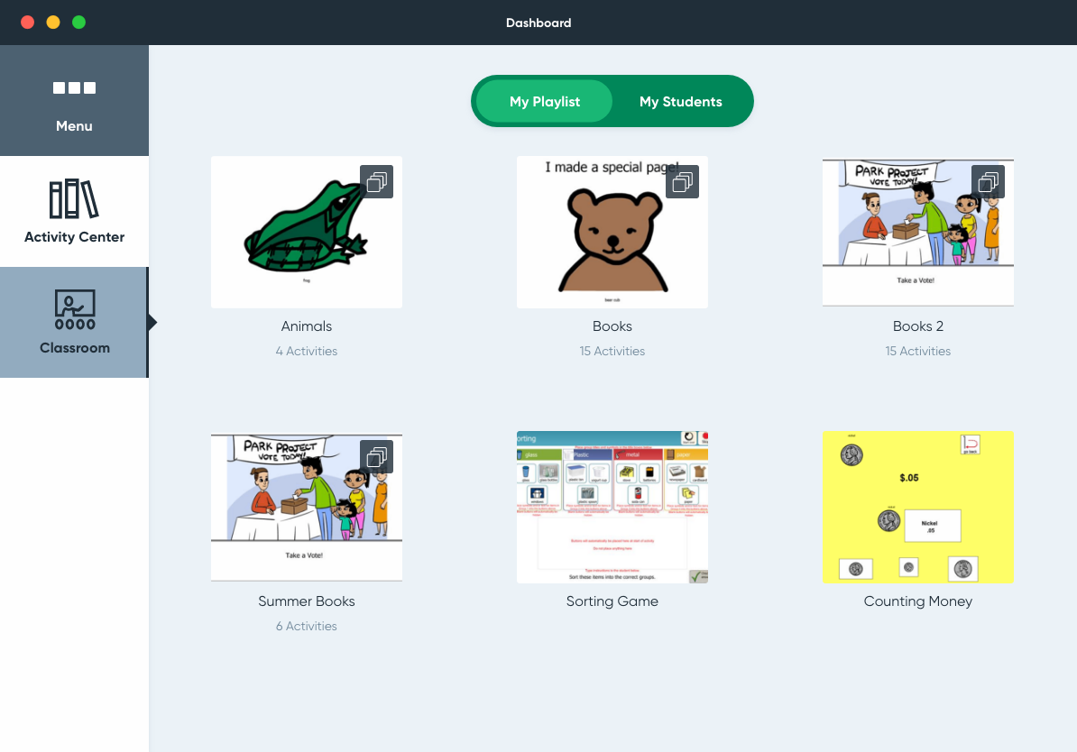 Boardmaker 7 Student Center is an app that brings personalized visuals and symbol-supported educational materials home. Assigned activities appear automatically in the learner’s account and can use custom settings for eye gaze, switch, mouse and touch.