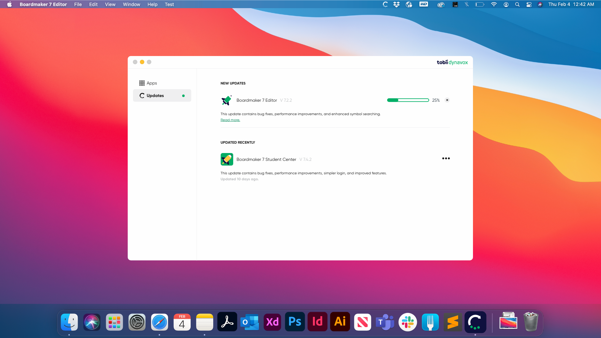 TD Updater is a new tool introduced to Boardmaker 7 Editor and Student Center to improve the user experience of updating an application. This application has the power to automatically check for updates and download them in the background, notify users of available updates, and repair an application. With its simple design, the application integrates seamlessly across all supported platforms (macOS, Windows, and Linux).
