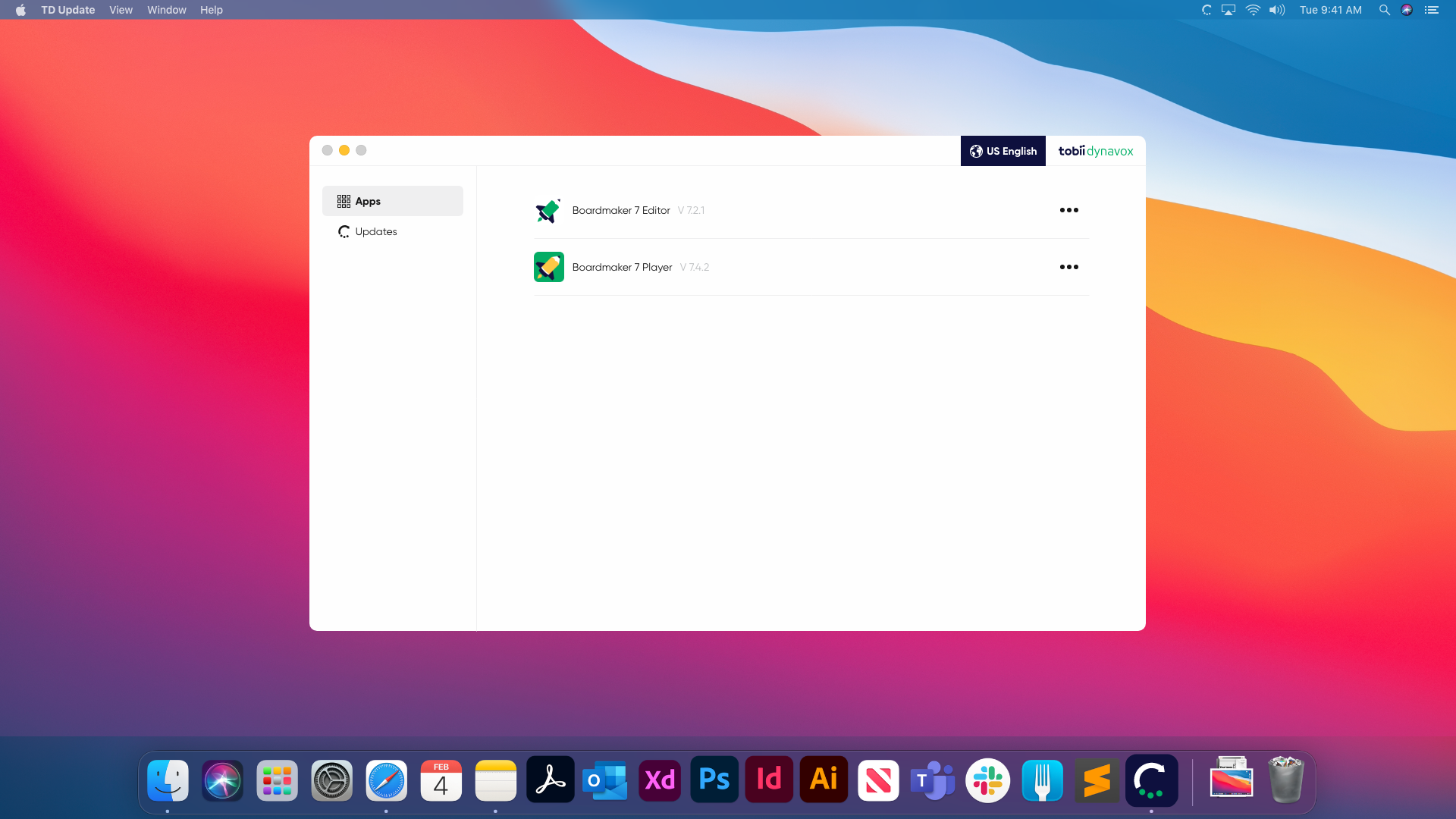 TD Updater is a new tool introduced to Boardmaker 7 Editor and Student Center to improve the user experience of updating an application. This application has the power to automatically check for updates and download them in the background, notify users of available updates, and repair an application. With its simple design, the application integrates seamlessly across all supported platforms (macOS, Windows, and Linux).